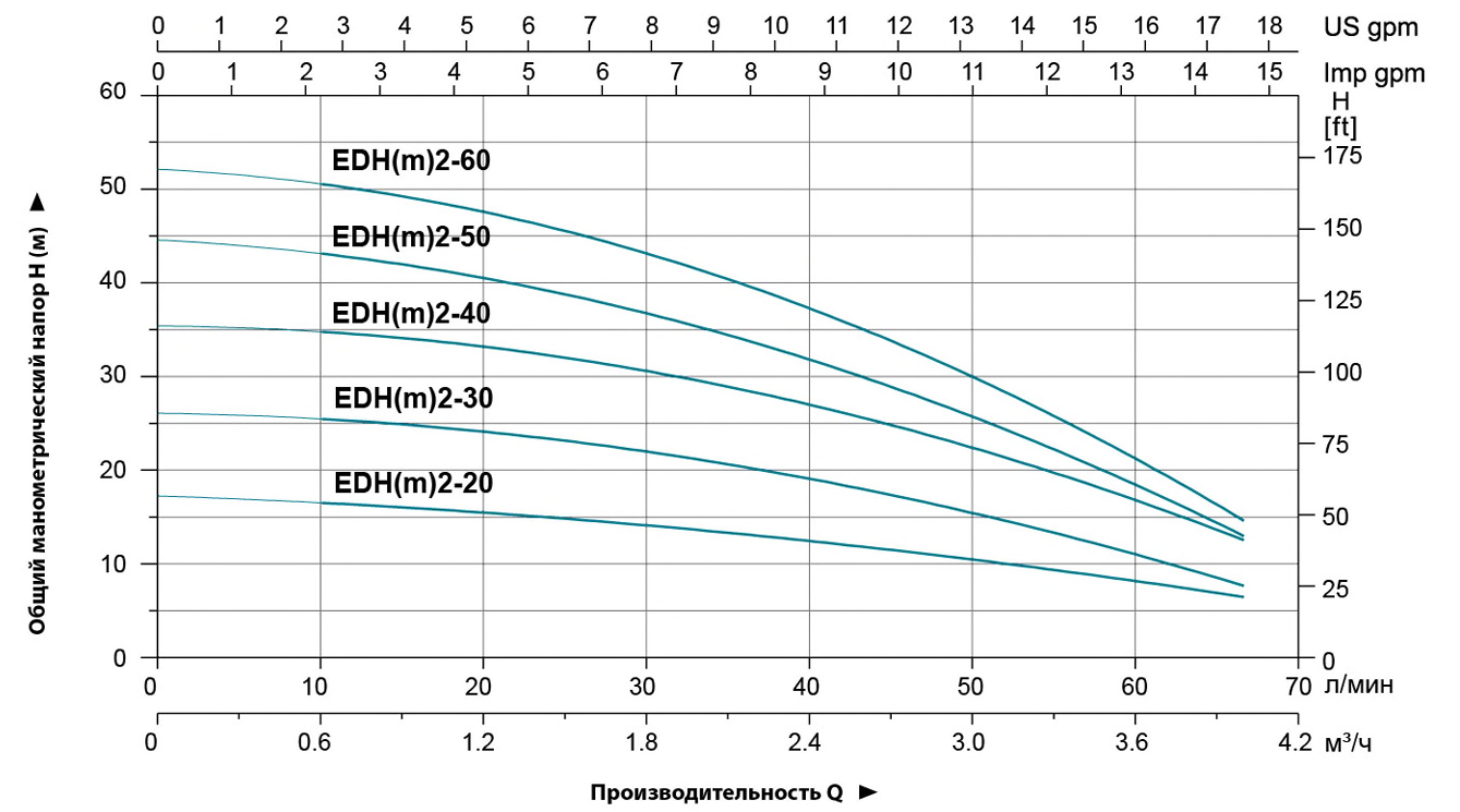 Горизонтальный многоступенчатый нормальновсасывающий центробежный насос EDH(m)2-50 с корпусом и рабочими колесами из нержавеющей стали.