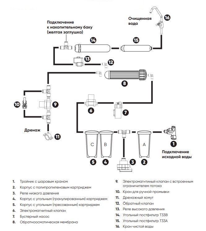 В основе работы лежит использование обратноосмотической мембраны Vontron ULP3012-400, которая обеспечивает высокую степень очистки и долгий срок службы.